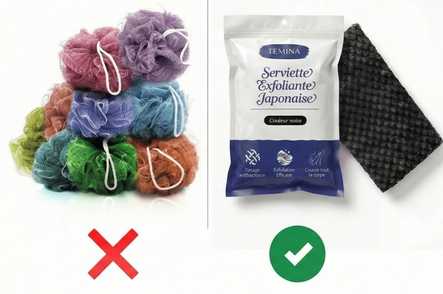 Elle possède aussi un tissage exfoliant doux, idéal pour retirer progressivement les peaux mortes sans agresser la peau.
